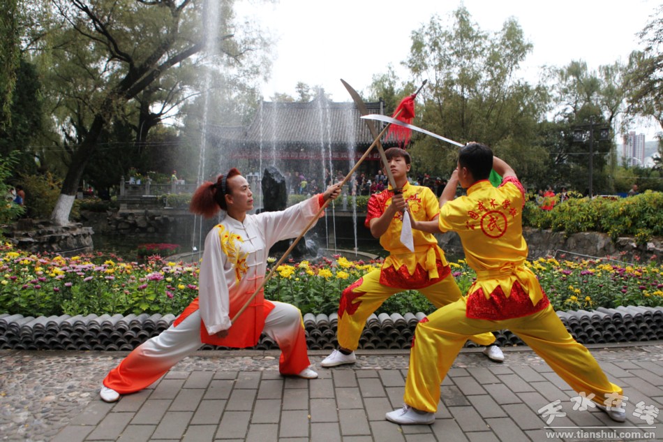 10月18日,應(yīng)天水在線邀請,公園武校校長李惠霞帶領(lǐng)兩名學(xué)生來到秦州區(qū)主題菊展現(xiàn)場人民公園,展示武技,拍攝抖音,宣傳大美秦州。同時,由秦州區(qū)園林處、天水在線、秦都集團(tuán)舉辦的2018年天水市秦州區(qū)主題菊展抖音挑戰(zhàn)賽正在火熱進(jìn)行。