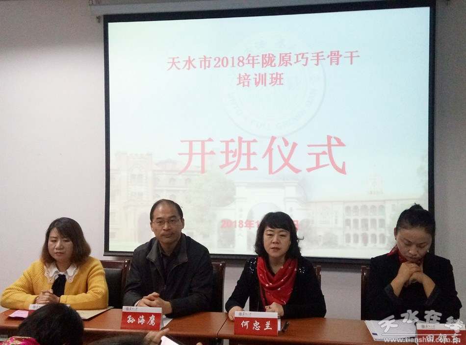 11月6日上午,由天水市婦聯(lián)主辦,秦州區(qū)婦聯(lián)、清水縣婦聯(lián)、張家川縣婦聯(lián)協(xié)辦,甘谷騰達(dá)職業(yè)技術(shù)培訓(xùn)學(xué)校和甘肅省農(nóng)村勞動(dòng)力資源開發(fā)促進(jìn)會(huì)承辦的2018年天水市隴原巧手骨干培訓(xùn)班在蘇州大學(xué)開班。市婦聯(lián)黨組書記、主席何忠蘭,蘇州大學(xué)機(jī)電工程學(xué)院副院長孫海鷹,甘肅省農(nóng)村勞動(dòng)力資源開發(fā)促進(jìn)會(huì)副會(huì)長田銀東出席開班儀式。來自我市各縣區(qū)具有創(chuàng)業(yè)想法和創(chuàng)新能力,能夠發(fā)揮示范引領(lǐng)作用的手工制作帶頭人、手工產(chǎn)品創(chuàng)意研發(fā)人員、隴原巧手產(chǎn)品經(jīng)紀(jì)人代表共50余人將參加為期4天的培訓(xùn)。