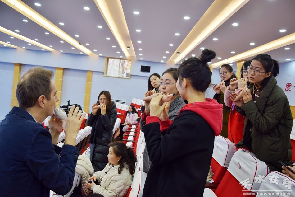 11月19日,意大利陶笛演奏家法比歐先生在宗沛陶笛藝術(shù)有限公司張宗沛先生的陪同下應(yīng)邀前來我市逸夫中學(xué)和師生們開展了一場陶笛藝術(shù)交流。法比歐先生精湛的陶笛演奏藝術(shù)和嚴(yán)謹(jǐn)?shù)慕虒W(xué)方法使師生們享受了一堂生動(dòng)的藝術(shù)教育。天水逸夫中學(xué)部分師生、家長一起聆聽了法比歐先生的精彩講座。
