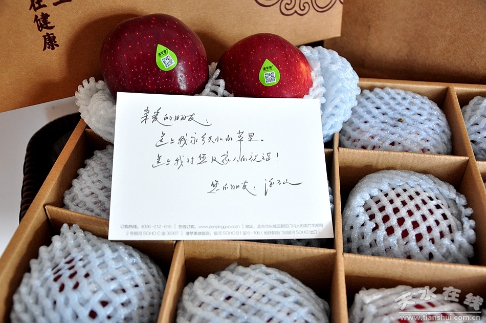 11月21日,天水在線收到了一件SOHO中國(guó)董事長(zhǎng)潘石屹?gòu)谋本┘膩?lái)的禮品,一箱潘蘋(píng)果,一封信件。SOHO中國(guó)推廣部推廣主管告訴小編,這份禮品是潘總感謝天水在線一直以來(lái)給予SOHO中國(guó)和他本人宣傳報(bào)道的一點(diǎn)心意;希望以后雙方加強(qiáng)合作,共同把潘總致力于家鄉(xiāng)的公益事業(yè)宣傳好報(bào)道好。
