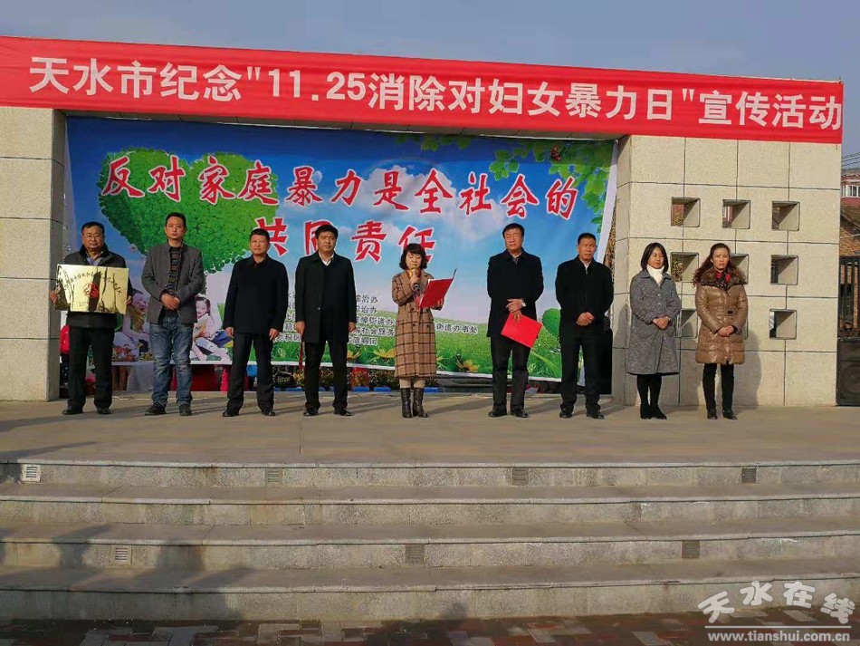 在“11·25國(guó)際消除對(duì)婦女暴力日”來(lái)臨之際,天水市紀(jì)念“11·25國(guó)際消除對(duì)婦女暴力日”宣傳活動(dòng)于11月23日在麥積區(qū)舉行;顒(dòng)由天水市婦聯(lián)、天水市綜治辦主辦,麥積區(qū)婦聯(lián)、麥積區(qū)綜治辦承辦。市婦聯(lián)黨組書(shū)記、主席何忠蘭,麥積區(qū)委常委、宣傳部長(zhǎng)閻小鵬,市婦聯(lián)副主席李萍,區(qū)人大常委會(huì)副主任竇順良,區(qū)政協(xié)副主席成映平及區(qū)婦聯(lián)主席謝小蘭、區(qū)綜治辦主任李永生、市婦聯(lián)權(quán)益部部長(zhǎng)王玲霞等出席活動(dòng)。市委政法委副書(shū)記、市綜治辦主任陳壁田主持活動(dòng)。