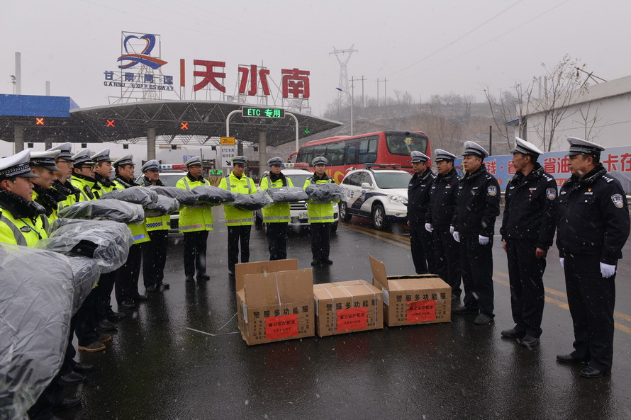 (省公安廳交管局“百日行動(dòng)”督導(dǎo)組雪天“送溫暖” 給執(zhí)勤民警送去多功能服)