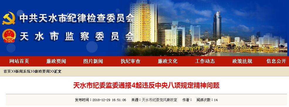 1.秦州區(qū)文化館館長(zhǎng)趙暉違規(guī)接受宴請(qǐng)問(wèn)題。2016年9月,在“非遺文化進(jìn)校園”活動(dòng)后,秦州區(qū)文化館館長(zhǎng)趙暉帶領(lǐng)本單位職工蒲某某、張某某等六人違規(guī)接受了活動(dòng)承辦方某傳媒公司經(jīng)理的宴請(qǐng);2016年10月,趙暉在組織雙聯(lián)點(diǎn)捐贈(zèng)和文藝活動(dòng)后,違規(guī)接受了非遺博覽園建設(shè)項(xiàng)目承建企業(yè)負(fù)責(zé)人王某的宴請(qǐng)。2018年8月27日,趙暉受到黨內(nèi)警告處分。