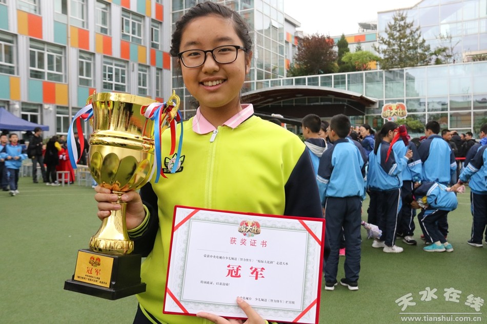 4月中旬,CCTV少兒頻道《智力快車》“校際大比拼”節(jié)目組走進(jìn)天水,在新華門小學(xué)完成節(jié)目錄制。節(jié)目通過知識搶答、才藝展示、個人實踐能力比拼等環(huán)節(jié)進(jìn)行校際展示,搶答內(nèi)容涉及天水及周邊人文、歷史、地理、民俗、名勝古跡以及天水特產(chǎn)等,天水市實驗小學(xué)、新華門小學(xué)、解放路第一小學(xué)、公園小學(xué)等4所學(xué)校近200名學(xué)生代表現(xiàn)場參加比拼,所錄制節(jié)目在中央電視臺少兒頻道連播。