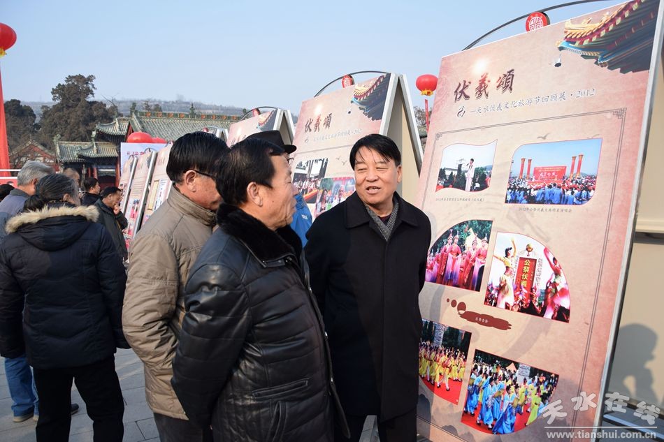 1月4日,“伏羲頌—公祭伏羲大典暨天水伏羲文化旅游節(jié)主題回顧展”在伏羲廣場(chǎng)開(kāi)幕。市委常委、宣傳部長(zhǎng)張建杰宣布主題回顧展開(kāi)幕。市領(lǐng)導(dǎo)蒲朝暉、王振宇、蘇定武,市級(jí)老領(lǐng)導(dǎo)馮沙駝、杜明富、白志家等出席開(kāi)幕式并參觀展覽。