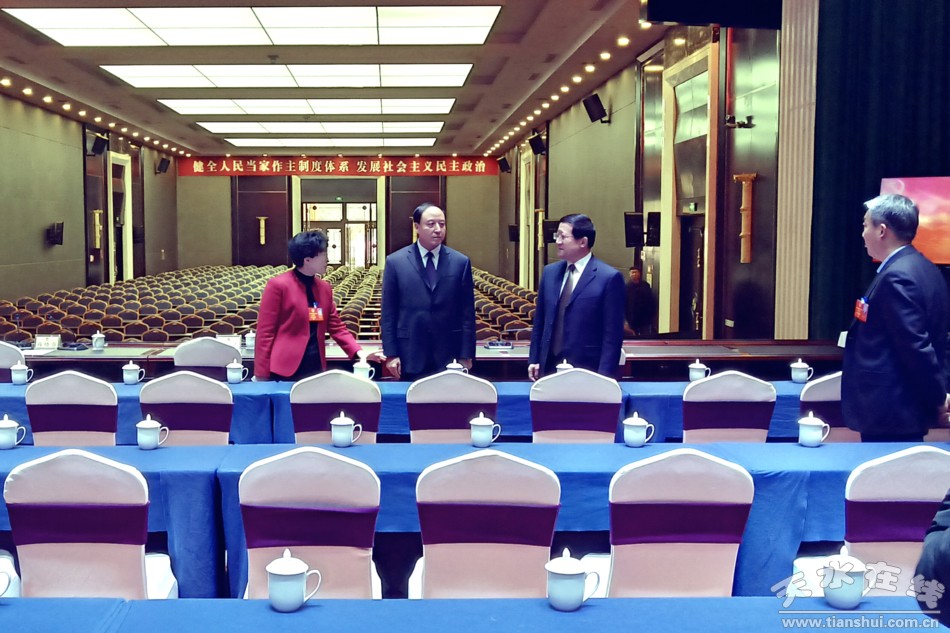 1月14日下午,在天水市第七屆人民代表大會第四次會議即將開幕之際,市人大常委會黨組副書記、副主任蒲朝暉到會議主會場天水賓館,實地檢查會場布置、安保等情況。市人大常委會秘書長楊坤一同檢查。