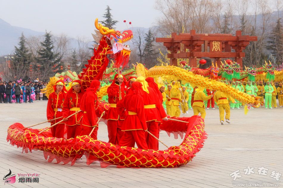 行穩(wěn)致遠(yuǎn)篇章由70個艄公和70支早船組成,70支旱船如千帆競發(fā),如百舸爭流,展現(xiàn)了清水兒女在市場經(jīng)濟(jì)大潮中搏浪前進(jìn)、力爭上游、不甘人后的精神風(fēng)貌。