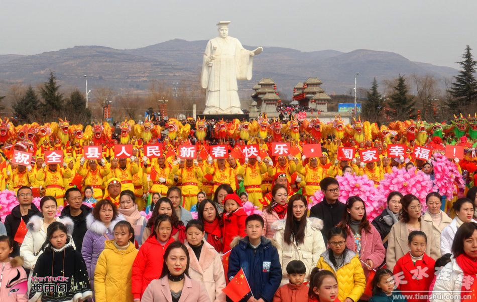 瑞歌歡舞慶盛世,龍騰獅舞送吉祥。農(nóng)歷正月初一,清水縣在軒轅廣場隆重舉辦2019(己亥)年賀新春•拜大年系列文化活動,放歌改革開放四十周年,喝彩昂揚(yáng)奮進(jìn)的新時代,慶祝新中國成立70周年,也為清水實(shí)現(xiàn)整縣脫貧摘帽凝聚強(qiáng)大的精神力量。清水縣這次賀新春•拜大年系列文化活動演出共分龍騰盛世、獅鬧新春、鼓振雄風(fēng)、行穩(wěn)致遠(yuǎn)、歌唱祖國等幾個篇章。