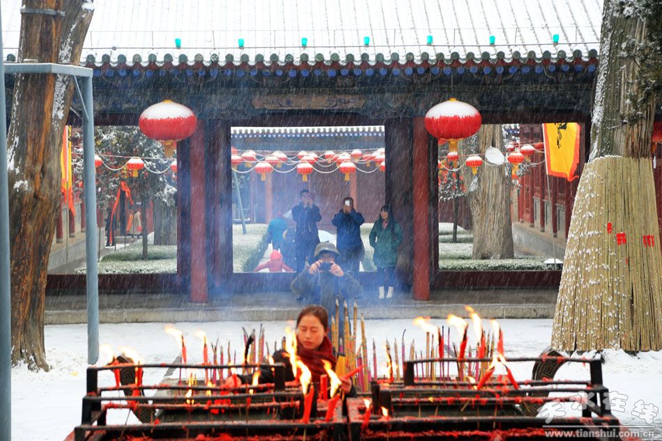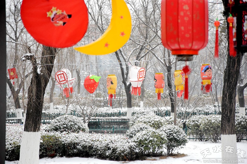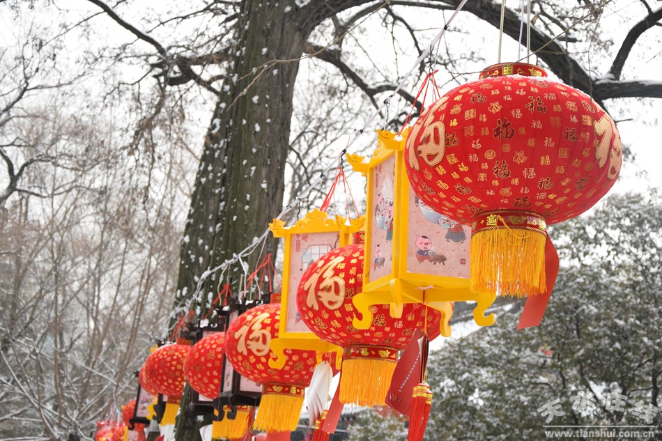 2月18日,農(nóng)歷正月十四。受北方冷空氣和西南暖濕氣流共同影響,今日凌晨天水普降中雪。紛紛揚揚的大雪落在大紅的燈籠上,好看極了。雪花伴著燈籠,古城天水出現(xiàn)“雪打燈”景象。正是正月十四“雪打燈”,當(dāng)年定是好收成。