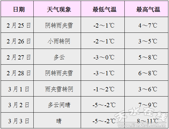 【摘要】預(yù)計(jì)本周我市多雨雪天氣,周末將轉(zhuǎn)晴。其中,受高原暖濕氣流影響,25日夜間至26日白天、28日夜間至3月1日上午,全市陰有雨夾雪或小雨,高海拔山區(qū)有小雪。雨雪天氣會(huì)造成道路濕滑或結(jié)冰,對(duì)“春運(yùn)”有一定的不利影響。