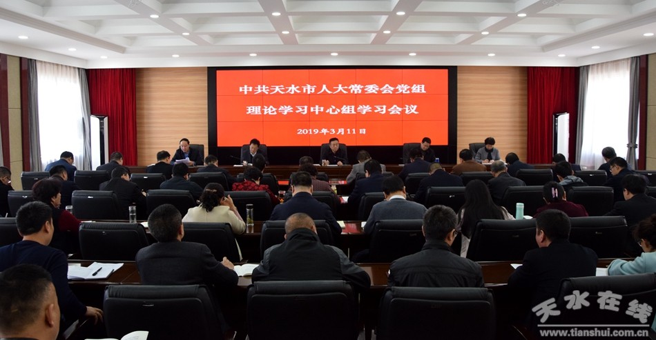 3月11日,天水市人大常委會(huì)黨組書記蔣曉強(qiáng)主持召開市人大常委會(huì)黨組理論學(xué)習(xí)中心組學(xué)習(xí)會(huì)議。會(huì)議學(xué)習(xí)了《中共中央關(guān)于加強(qiáng)黨的政治建設(shè)的意見》《習(xí)近平扶貧論述摘編》部分章節(jié),以及習(xí)近平總書記在參加十三屆全國(guó)人大二次會(huì)議甘肅代表團(tuán)分團(tuán)審議時(shí)的重要講話精神,省委常委會(huì)擴(kuò)大會(huì)議、省委有關(guān)《通知》、市委常委會(huì)會(huì)議精神,觀看了習(xí)近平總書記參加十三屆全國(guó)人大二次會(huì)議甘肅代表團(tuán)分團(tuán)審議視頻和有關(guān)警示教育片。