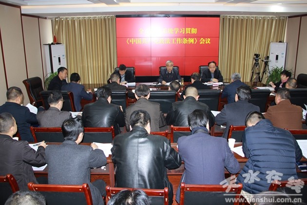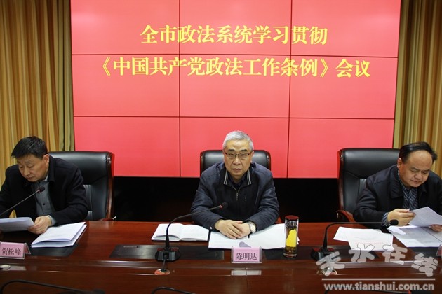 3月13日,天水市委政法委組織召開(kāi)全市政法系統(tǒng)學(xué)習(xí)貫徹《中國(guó)共產(chǎn)黨政法工作條例》會(huì)議,對(duì)全市政法系統(tǒng)掀起學(xué)習(xí)宣傳貫徹?zé)岢弊髁巳姘才挪渴。?huì)上宣讀了《中共天水市委政法委關(guān)于認(rèn)真學(xué)習(xí)宣傳貫徹〈中國(guó)共產(chǎn)黨政法工作條例〉的通知》,全文學(xué)習(xí)了《中國(guó)共產(chǎn)黨政法工作條例》。