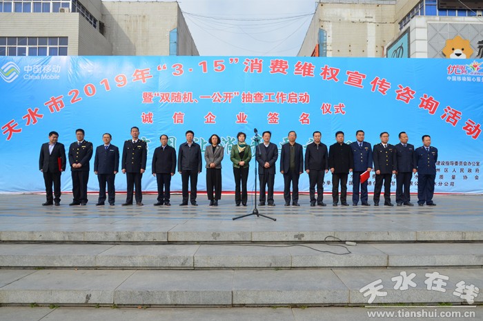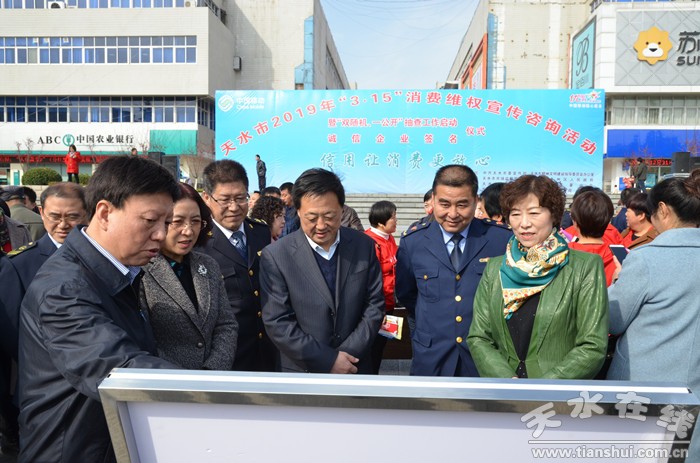 3月15日,天水市2019年“3·15”消費維權(quán)宣傳咨詢活動暨“雙隨機、一公開”抽查工作啟動儀式在龍城廣場舉行。今年“3·15”消費維權(quán)活動的主題是“信用讓消費更放心”。