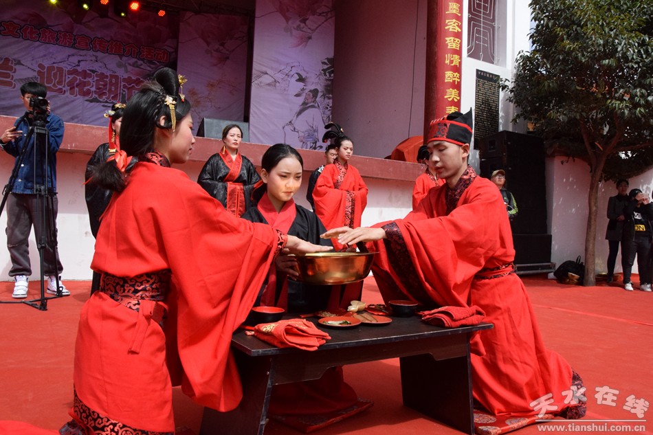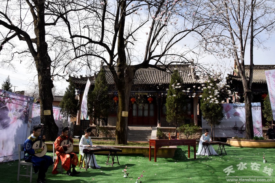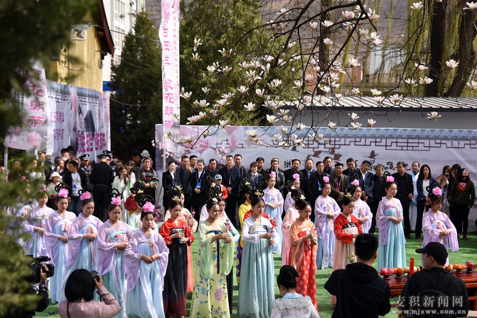 啟動儀式結(jié)束后,在雙玉蘭堂景區(qū)表演了敬花神儀式,隨后在雙玉蘭堂景區(qū)文化廣場舞臺組織開展了“玉蘭花開”主題情景劇表演、仿唐婚禮服裝秀以及歌舞、戲曲等文藝表演、茶藝表演、民俗藝術(shù)表演和古箏、古琴等樂器表演活動,美輪美奐的節(jié)目表演,贏得了現(xiàn)場觀眾的熱烈掌聲。同時組織旅行社等涉旅企業(yè)開展了旅游宣傳推介、咨詢服務(wù)等活動,讓現(xiàn)場的游客和觀眾更深層次的了解了麥積區(qū)深厚的歷史文化底蘊和豐富的自然旅游資源。