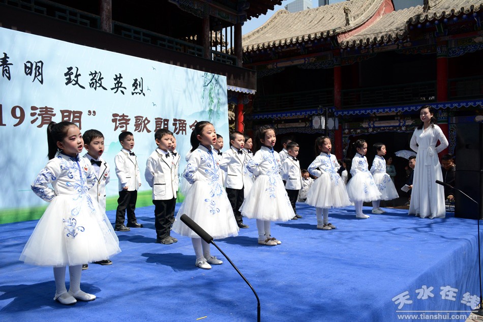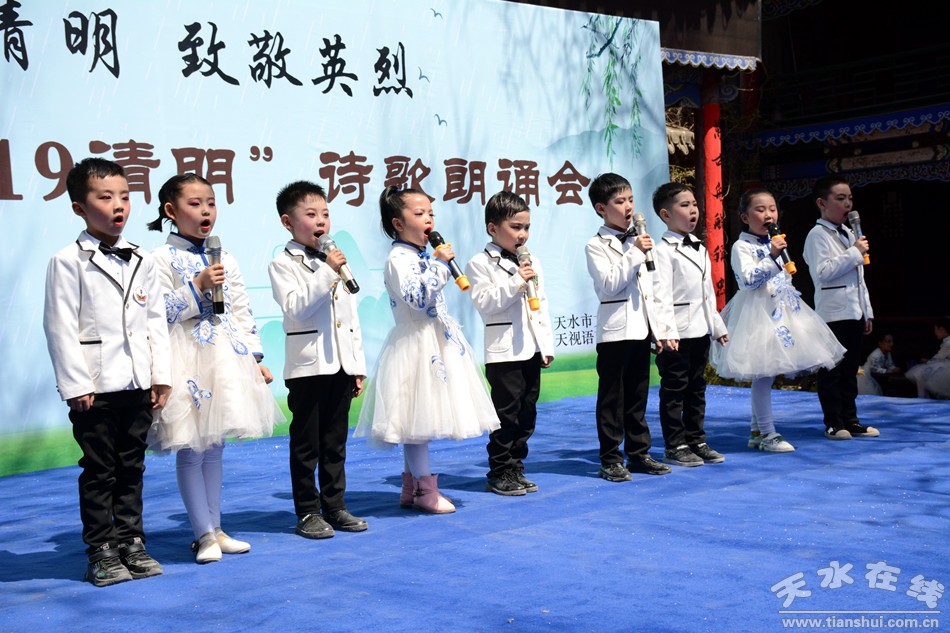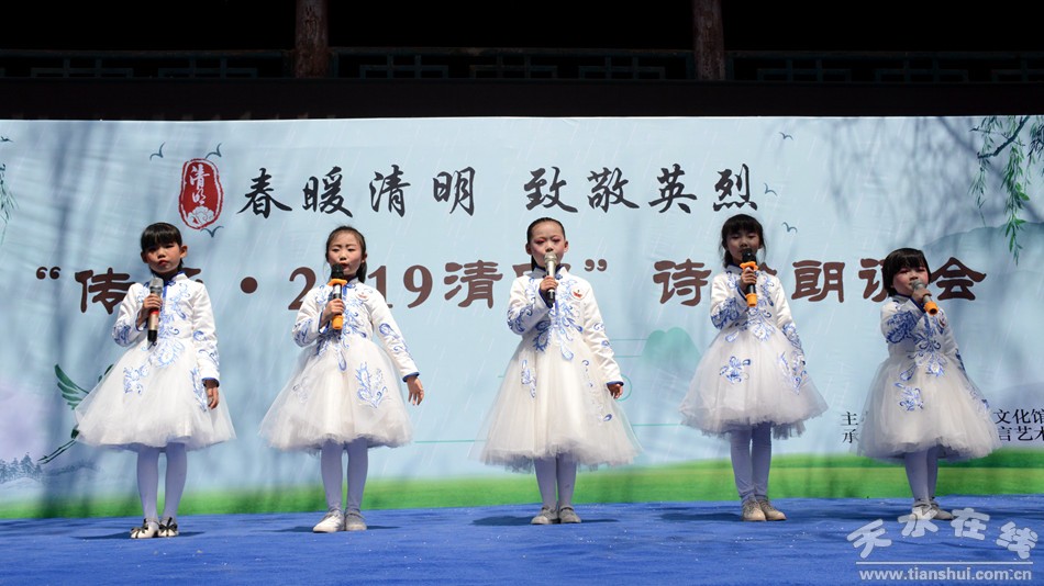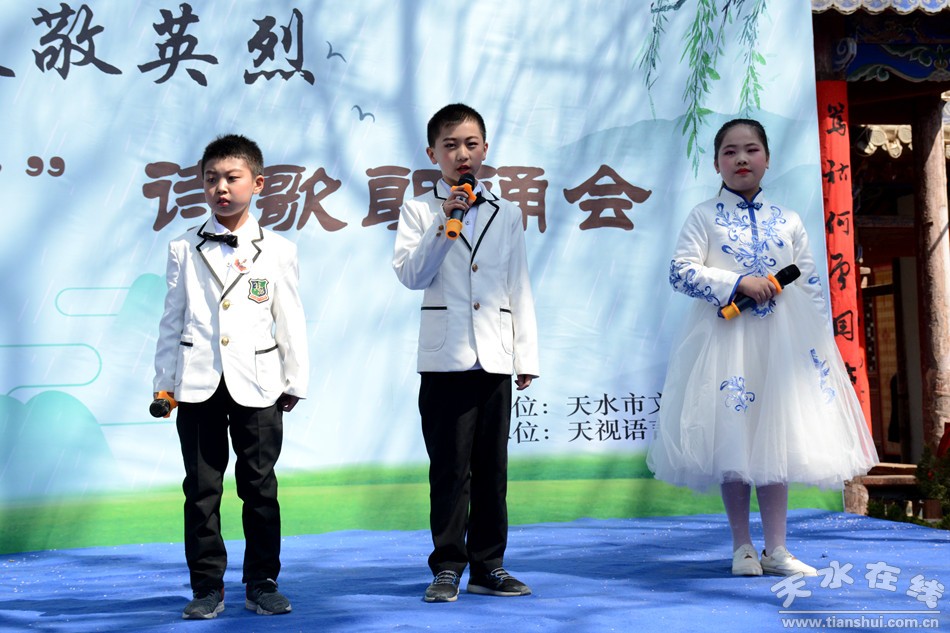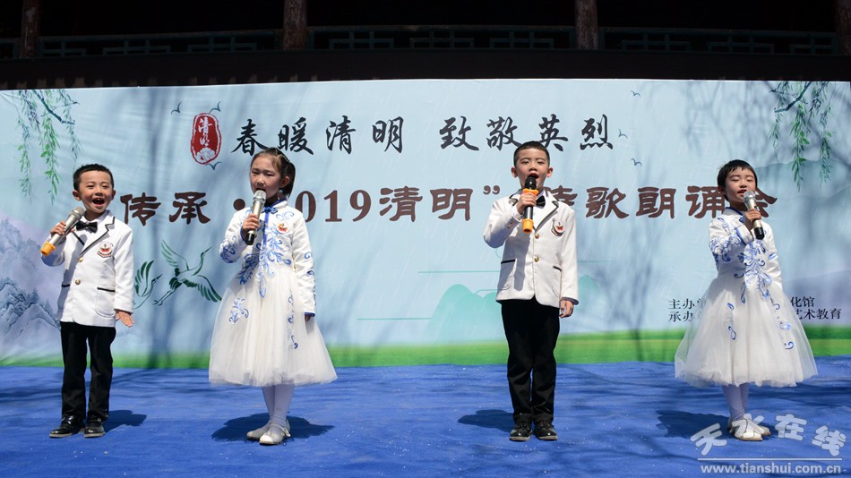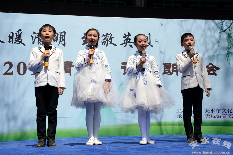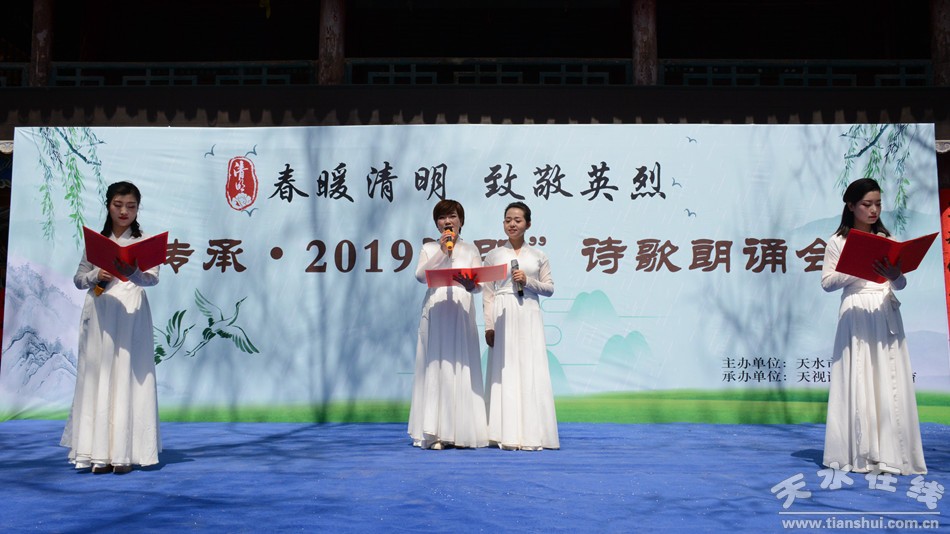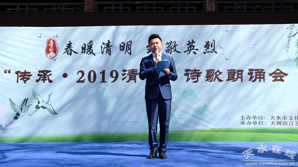 4月5日,由天水市文化館主辦,天視語言藝術(shù)教育承辦的“春暖清明 致敬英烈”——傳承·2019清明詩會在市文化館舉行。詩會按照三個(gè)篇章進(jìn)行,第一篇章為春暖清明,第二篇章為致敬英烈,第三篇章為傳承薪火。詩會在全體朗讀者朗讀《讓世界因我而美麗》落下帷幕。