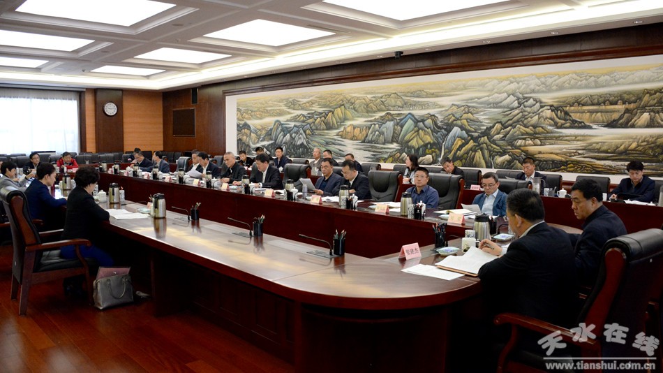 (省公祭伏羲大典活動領(lǐng)導小組辦公室主任、天水市市長王軍匯報公祭伏羲大典籌備工作情況。) |