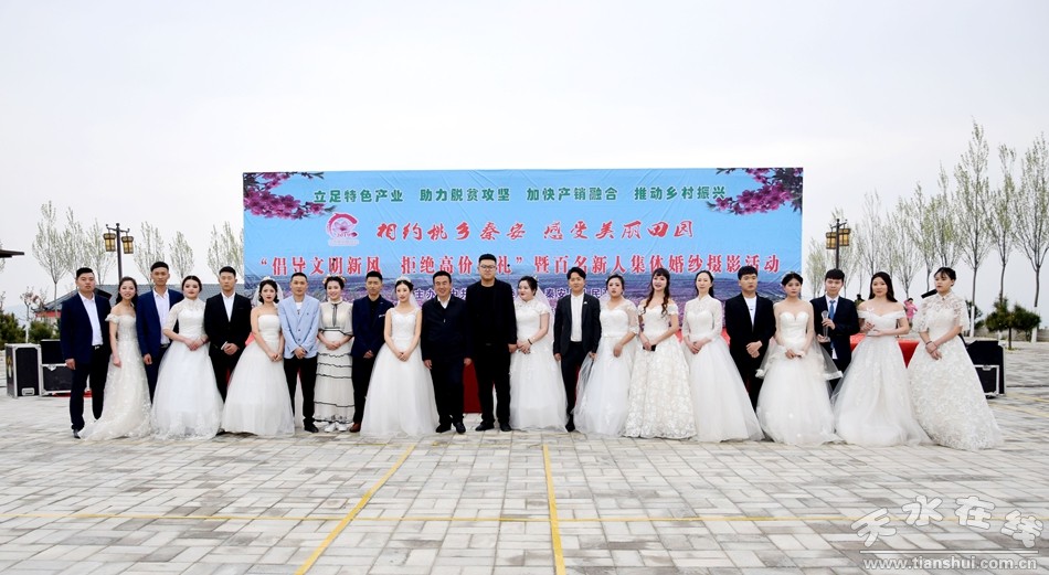 為弘揚(yáng)傳統(tǒng)美德,抵制高價(jià)彩禮,積極倡導(dǎo)文明婚嫁新風(fēng)尚,4月13日,由秦安縣委、縣政府主辦,團(tuán)縣委、婦聯(lián)承辦的“倡導(dǎo)文明新風(fēng) 拒絕高價(jià)彩禮”暨百名新人集體婚紗攝影活動(dòng)啟動(dòng)儀式在中國(guó)美麗田園劉坪何灣萬(wàn)畝優(yōu)質(zhì)蜜桃基地舉行。