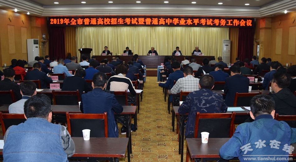 5月27日,天水市招生考試委員會召開2019年全市普通高校招生考試暨普通高中學(xué)業(yè)水平考試考務(wù)工作會議,全面安排部署今年全市普通高考、學(xué)考考試安全及考務(wù)工作。市委常委、副市長宮輝在會上強調(diào),各縣區(qū)、各職能部門一定要充分認識做好考試安全工作的重大意義,利用考前有限時間,查漏補缺,完善預(yù)案,盡職盡責(zé)把今年的高考、學(xué)考工作籌劃好、組織好,確保高考、學(xué)考工作安全、平穩(wěn)、順利。