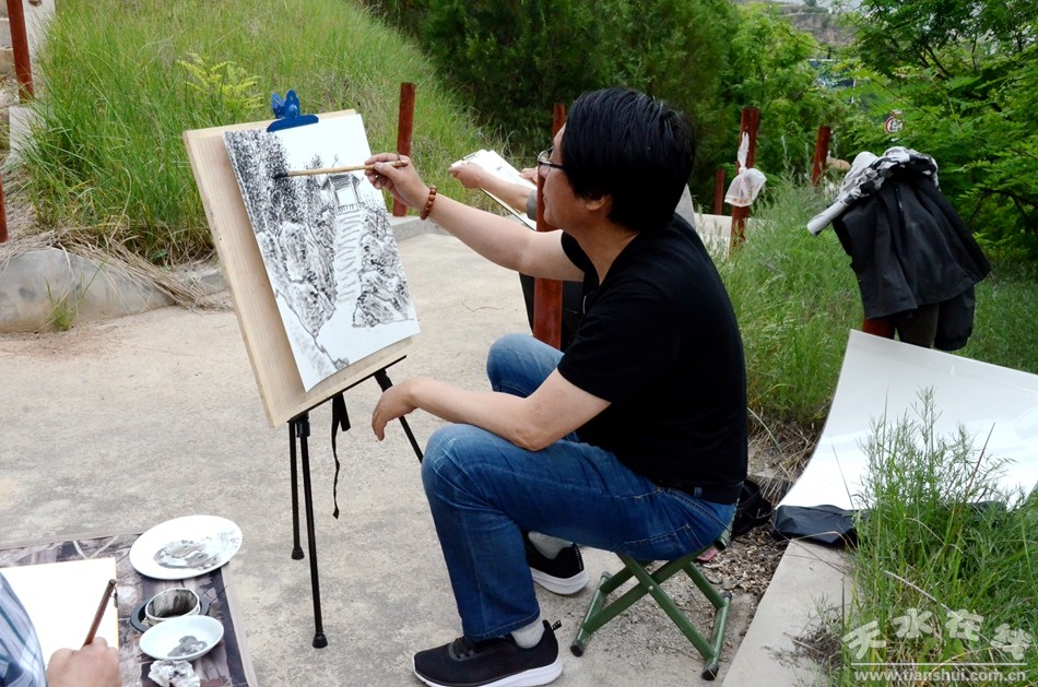 天水在線5月26日攝影報道 為了宣傳煙鋪大櫻桃,應(yīng)天水在線和煙鋪農(nóng)莊邀請,天水市美術(shù)家協(xié)會主席賈利珠帶領(lǐng)協(xié)會14名成員,5月26日,走進(jìn)煙鋪櫻桃園采風(fēng)。