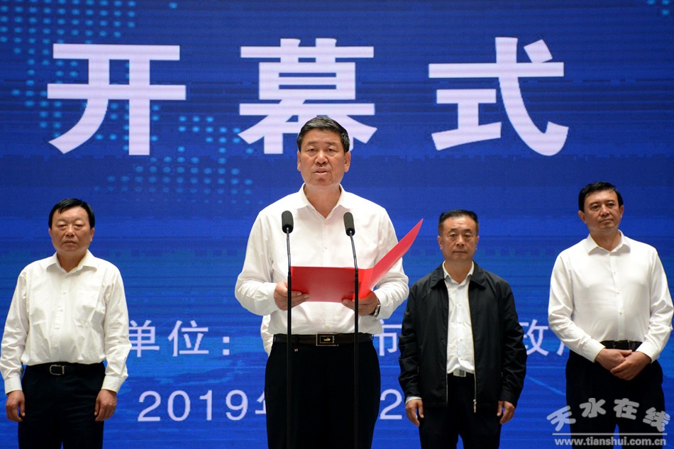 6月20日,2019年名優(yōu)產(chǎn)品暨海峽兩岸特色商品博覽會(huì)在天水會(huì)展中心開幕。市委書記王銳宣布博覽會(huì)開幕。