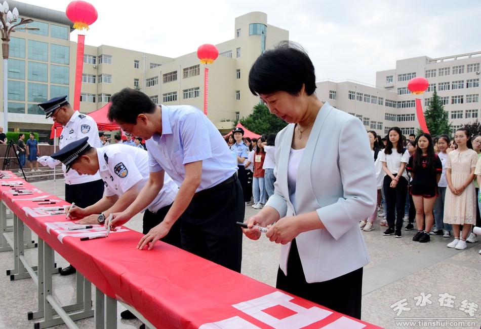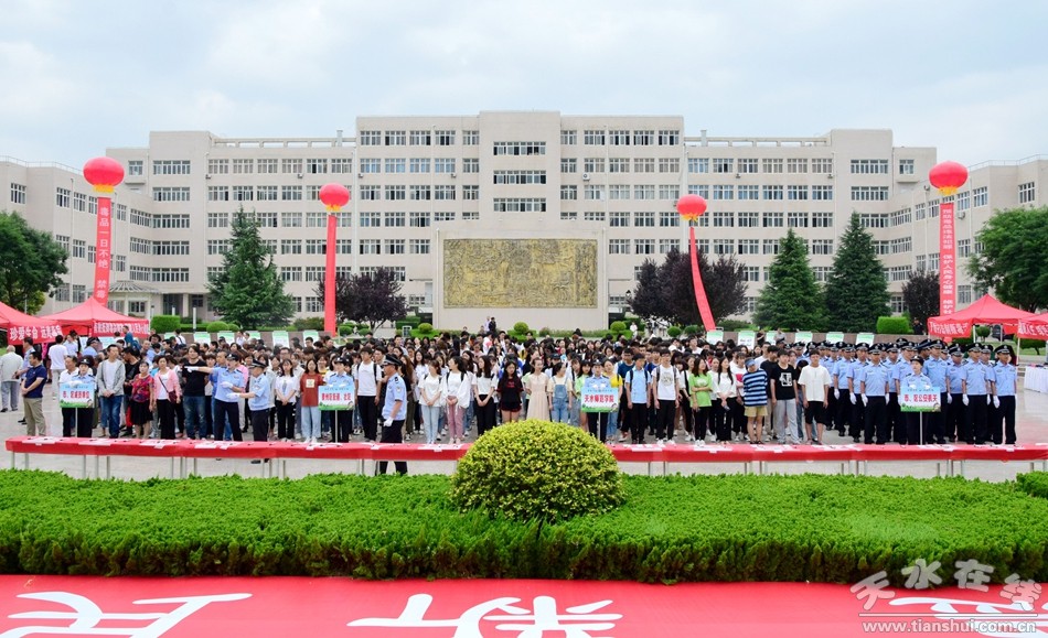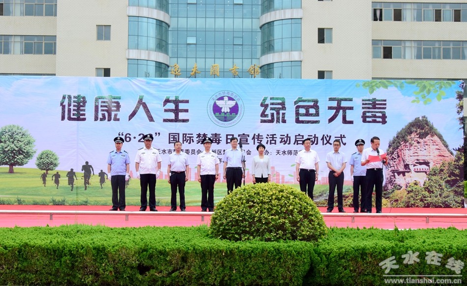 6月26日是第32個(gè)國(guó)際禁毒日,我市在天水師范學(xué)院舉行6·26國(guó)際禁毒日宣傳活動(dòng)啟動(dòng)儀式。市人大常委會(huì)副主任王曉琴宣布宣傳活動(dòng)開(kāi)始,副市長(zhǎng)、市禁毒委主任、市公安局局長(zhǎng)馬瑛講話,天水師范學(xué)院黨委書(shū)記李正元等領(lǐng)導(dǎo)出席活動(dòng)。