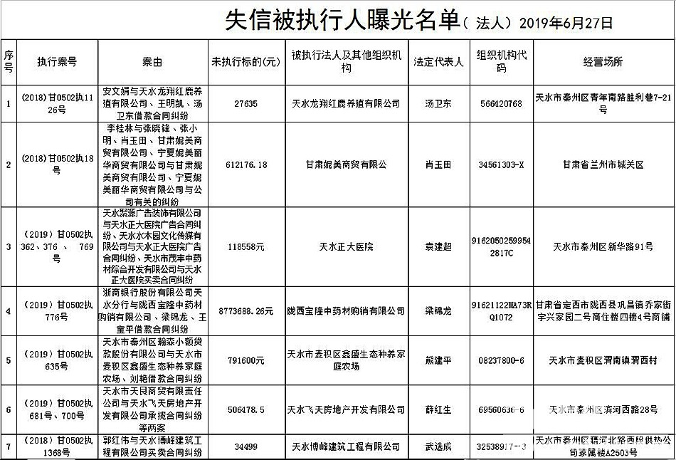 附:第一批公布失信被執(zhí)行人名單