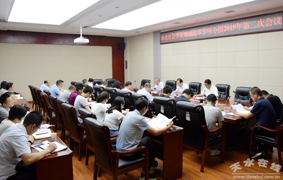 8月6日,天水市委社會(huì)事業(yè)領(lǐng)域改革專(zhuān)項(xiàng)小組召開(kāi)第二次全體會(huì)議。市委常委、組織部部長(zhǎng)、市委社會(huì)事業(yè)領(lǐng)域改革專(zhuān)項(xiàng)小組組長(zhǎng)賈義翔出席會(huì)議并講話。他強(qiáng)調(diào),今年是新中國(guó)成立70周年,是全面建成小康社會(huì)的關(guān)鍵之年,做好全面深化改革工作意義重大,社會(huì)事業(yè)領(lǐng)域改革專(zhuān)項(xiàng)小組各成員單位要切實(shí)把思想和行動(dòng)統(tǒng)一到中央和省、市關(guān)于深化改革的部署要求上來(lái),進(jìn)一步增強(qiáng)全面深化改革的責(zé)任感和使命感,確保改革方向不偏、舉措不亂、力度不減,持續(xù)推進(jìn)社會(huì)事業(yè)領(lǐng)域各項(xiàng)改革措施落地見(jiàn)效。