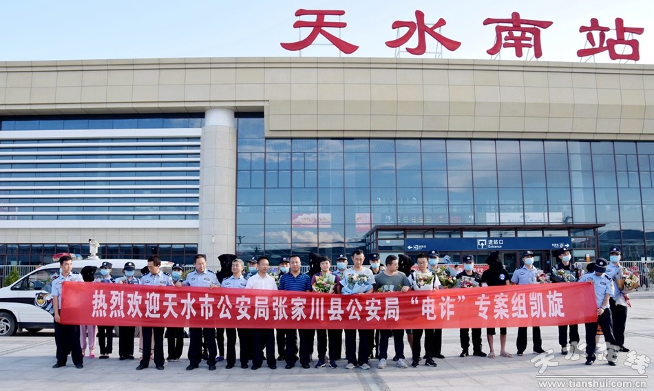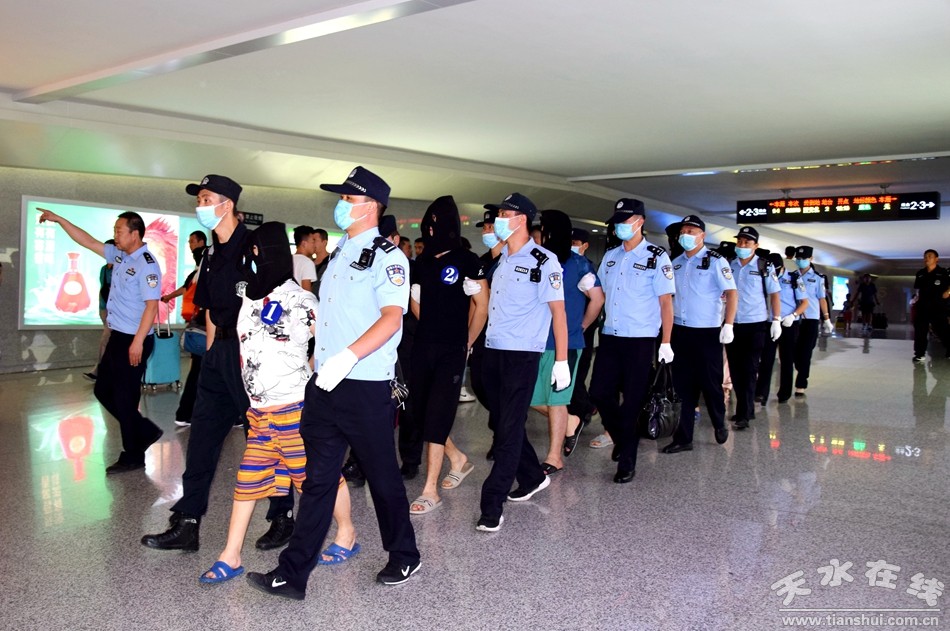 8月9日,天水警方押回7名在越南針對(duì)甘肅地區(qū)實(shí)施詐騙的犯罪嫌疑人,這是我市也是我省押回的首個(gè)境外電信詐騙團(tuán)伙。下午6點(diǎn),在天水南站,7名電信詐騙犯罪嫌疑人被天水警方從湖南押解回天水。