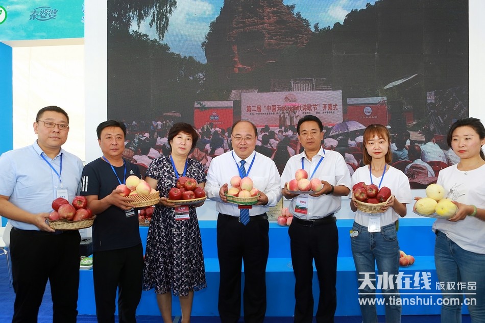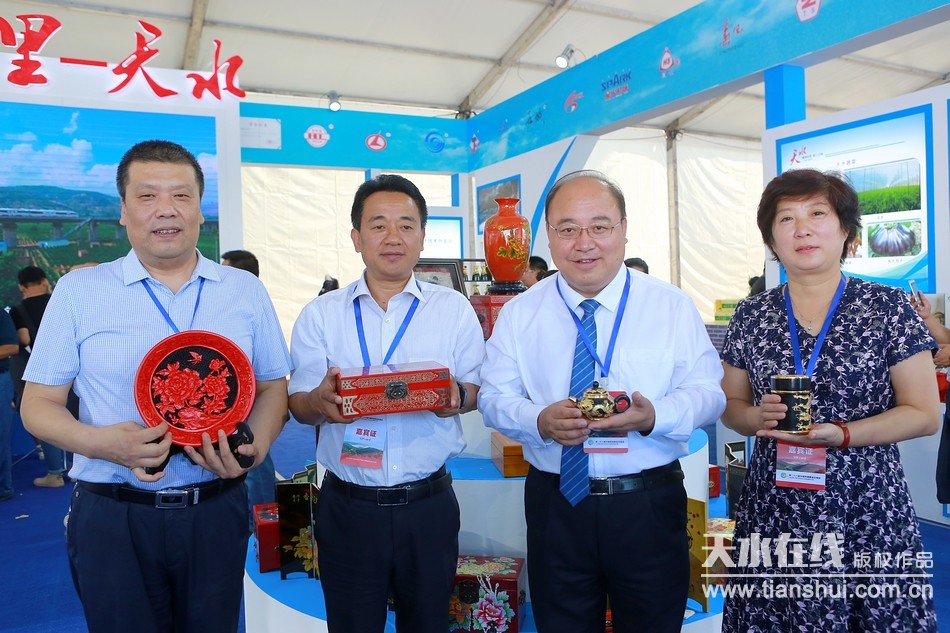 (天水市委常委、副市長宮輝在天水展館推介天水特色產品。) |