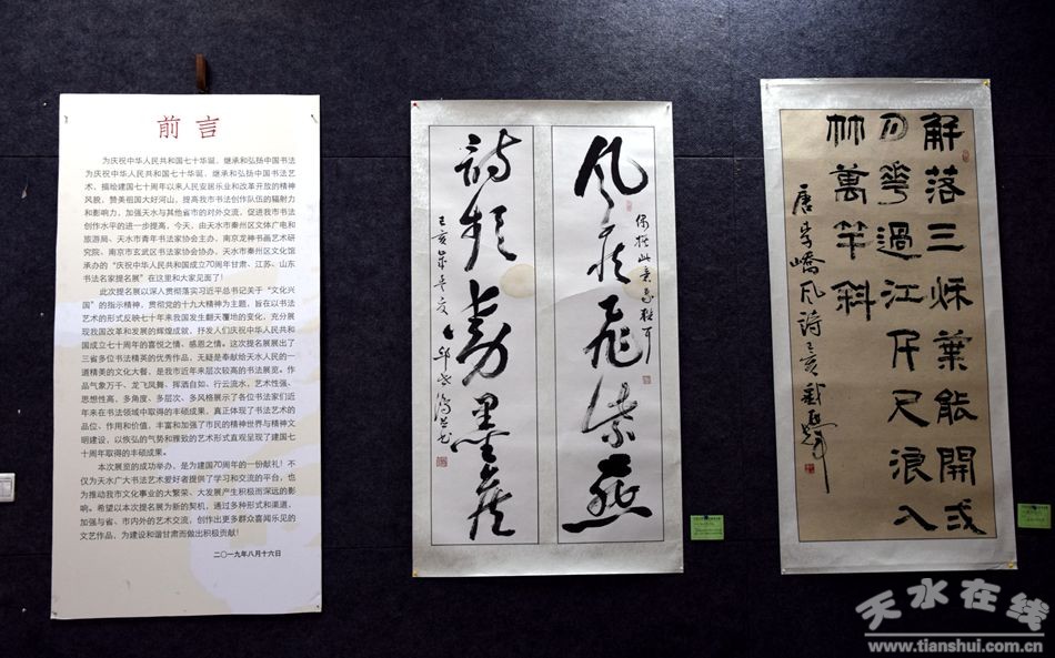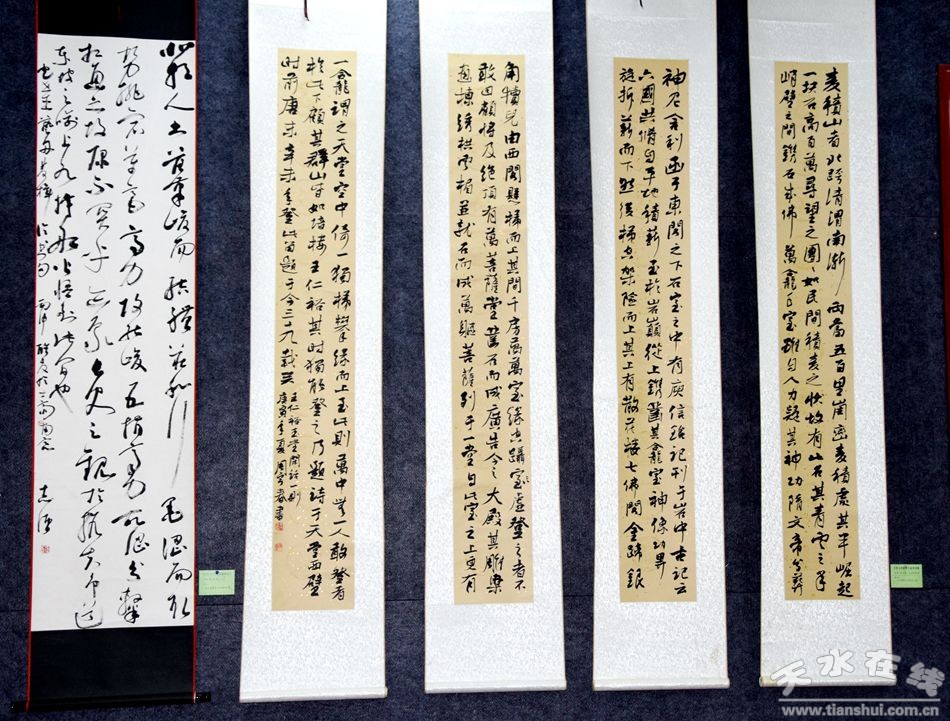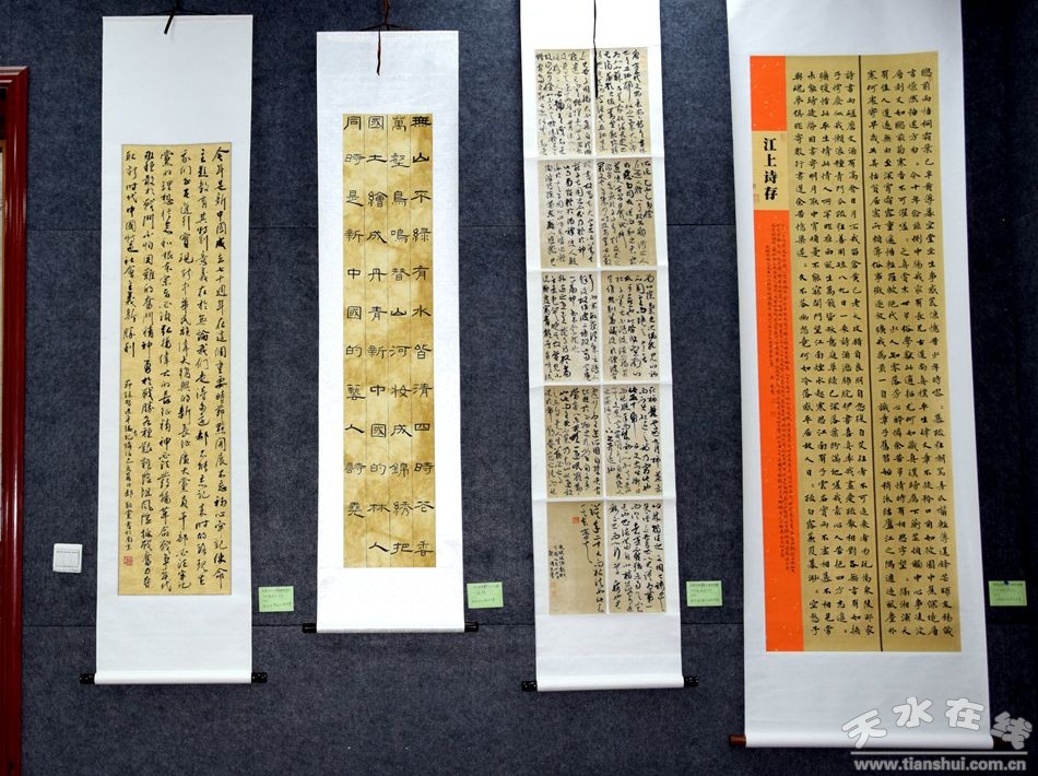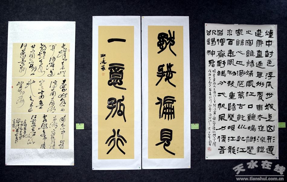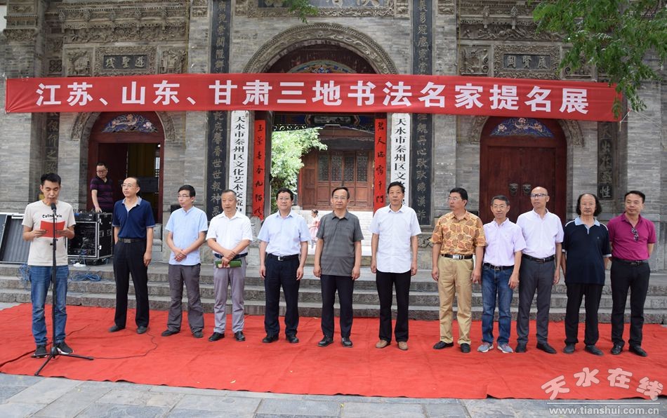 8月16日,由秦州區(qū)文體廣電和旅游局、天水市青年書法家協(xié)會(huì)主辦的江蘇、山東、甘肅三地書法名家提名展在陜西會(huì)館開展。市領(lǐng)導(dǎo)蒲朝暉、王振宇參觀展覽。