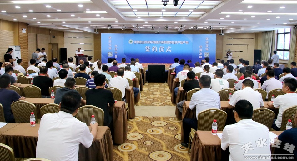 天水在線武山報(bào)道 8月19日,武山縣投資環(huán)境推介說(shuō)明暨特色農(nóng)產(chǎn)品產(chǎn)銷簽約儀式在縣群眾文化活動(dòng)中心舉行。市政協(xié)副主席、武山縣委書記索鴻賓出席儀式并致辭。