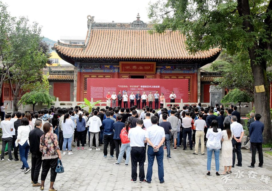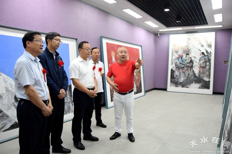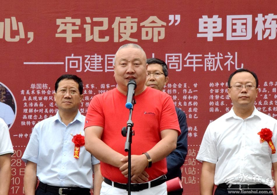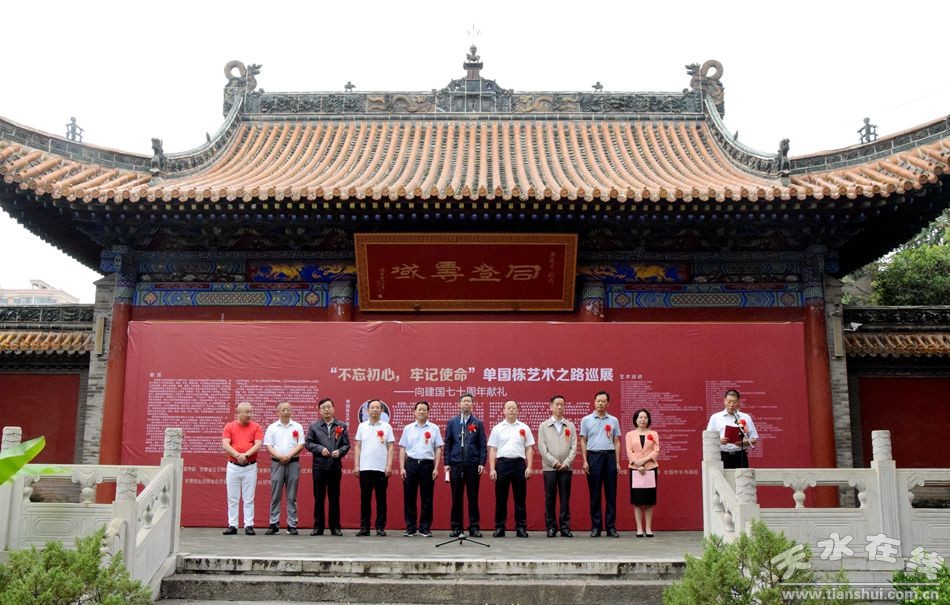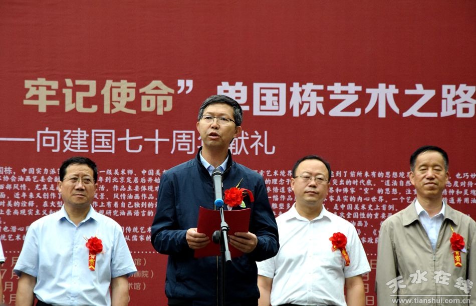 8月24日,“不忘初心、牢記使命”單國棟藝術(shù)之路全國巡展第六站在天水書畫院開展。市委常委、副市長劉驍宣布開展,市委常委、組織部部長賈義翔,市人大常委會副主任蒲朝暉,市政協(xié)副主席王振宇、蘇定武出席開展儀式。