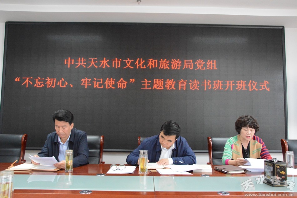 9月16日上午,天水市文化和旅游局黨組舉行“不忘初心、牢記使命”主題教育讀書班開班儀式。開班儀式上學(xué)習(xí)傳達(dá)習(xí)近平總書記在“不忘初心、牢記使命”主題教育工作會議上的重要講話精神,中共中央政治局常委、中央書記處書記王滬寧同志在全國“不忘初心、牢記使命”主題教育第一批總結(jié)暨第二批部署會議上的講話精神,省委書記林鐸在全省“不忘初心、牢記使命”主題教育動員部署會上的講話精神,省長唐仁健在全省“不忘初心、牢記使命”主題教育第一批總結(jié)暨第二批部署會議上的講話精神;宣讀了《中共天水市文化和旅游局黨組“不忘初心、牢記使命”主題教育讀書班實施方案》,安排部署了局黨組 “不忘初心、牢記使命”主題教育讀書班活動。