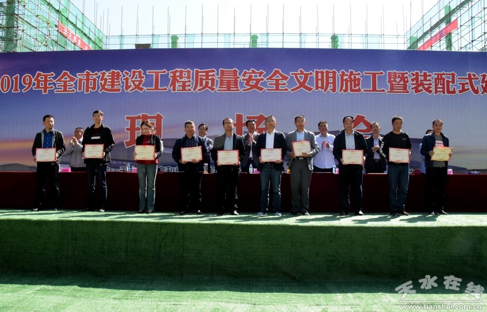 會上,表彰獎勵了上年度建設(shè)工程安全生產(chǎn)先進(jìn)單位、先進(jìn)個人,向安全生產(chǎn)標(biāo)準(zhǔn)化企業(yè)和工地進(jìn)行了授牌;會前,與會人員對天水大劇院項目進(jìn)行了現(xiàn)場觀摩并觀看了有關(guān)裝配式建筑的宣傳片。
