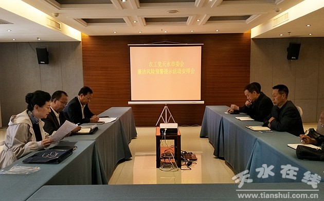 9月21日,農(nóng)工黨天水市委會召開了廉潔風險預警提示活動安排會,市委會常委和各總支負責人參加了會議。會議主要學習了《農(nóng)工黨天水市委會廉潔風險預警提示活動實施方案》,并成立了農(nóng)工黨天水市監(jiān)督委員會。