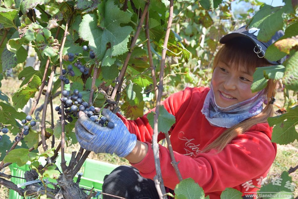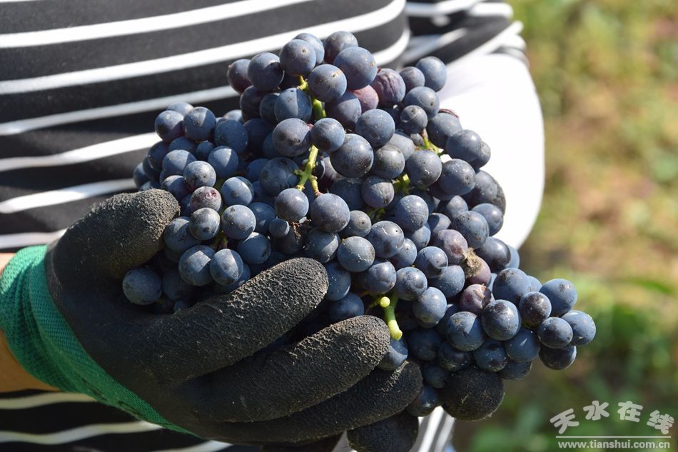 (麥積區(qū)馬跑泉黑比諾葡萄喜獲豐收) |