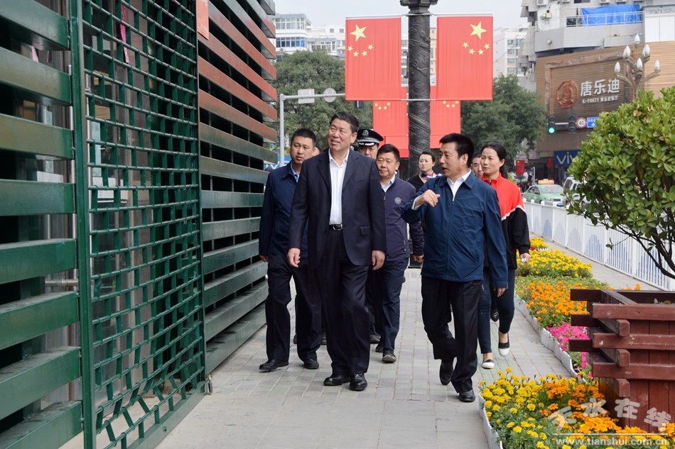 9月26日,天水市委副書記、市長(zhǎng)王軍帶領(lǐng)秦州區(qū)政府、市建設(shè)局、市自然資源局、市文化旅游局、市綜合執(zhí)法局、市交警支隊(duì)、市天源水務(wù)公司、市自來水公司等相關(guān)部門負(fù)責(zé)人就中心城區(qū)環(huán)境綜合整治和國(guó)慶氛圍營(yíng)造工作進(jìn)行檢查。王軍強(qiáng)調(diào),各級(jí)各部門要提高政治站位,強(qiáng)化責(zé)任擔(dān)當(dāng),狠抓工作落實(shí),以嶄新的城市面貌和良好的城市形象迎接中華人民共和國(guó)成立70周年。