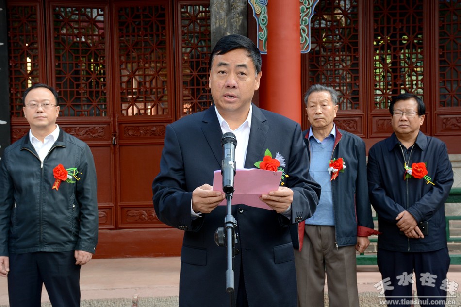 逯克宗代表市四大組織對書畫展開展表示祝賀,向各位老年書畫愛好者以及全市老年人表示親切的問候。希望市老年書畫研究會的書畫愛好者,利用好書畫創(chuàng)作這一載體和橋梁,提升創(chuàng)作層次,拓展活動內(nèi)容、豐富交流形式,繼續(xù)精心創(chuàng)作出豐富多彩的弘揚(yáng)時代主旋律、謳歌美好新生活、暢想未來好時光的書畫藝術(shù)作品,營造富有時代特色的良好精神家園,為促進(jìn)天水經(jīng)濟(jì)大發(fā)展、文化大繁榮,實(shí)現(xiàn)中華民族偉大復(fù)興的“中國夢”作出新的更大的貢獻(xiàn)。