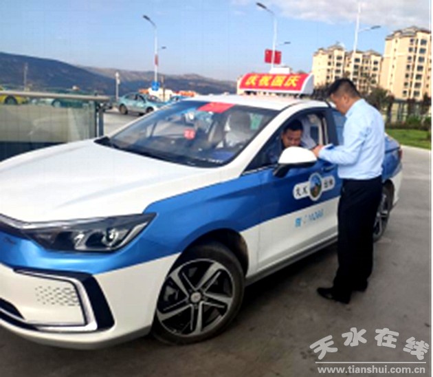 在國慶來臨之際,公司負(fù)責(zé)人劉剛親自帶隊(duì)上路稽查我公司出租車行車情況,進(jìn)行逐車查逐人核,主要對(duì)新能源純電動(dòng)出租車進(jìn)行排查,確保行車安全、車輛衛(wèi)生、駕駛員形象、文明用語“您好,謝謝,再見”的使用,著力打造行業(yè)服務(wù)標(biāo)桿,樹立天水出租車行業(yè)新形象新風(fēng)貌,純電動(dòng)出租車不僅車內(nèi)噪音小,而且沒有燃油異味,低碳環(huán)保,也為提升我市環(huán)境質(zhì)量做出了努力。