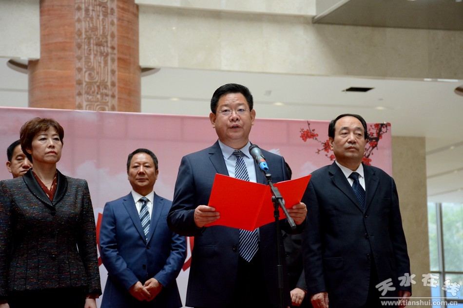 王軍在致辭時說,新中國成立70年來,全市經(jīng)濟社會發(fā)展取得了令人矚目的成就,城鄉(xiāng)面貌發(fā)生了翻天覆地的歷史巨變,譜寫了天水發(fā)展歷史上濃墨重彩的輝煌篇章。特別是黨的十八大以來,全市堅持以習(xí)近平新時代中國特色社會主義思想為引領(lǐng),認真貫徹落實習(xí)近平總書記視察甘肅重要講話和“八個著力”重要指示精神,在脫貧攻堅和全面建成小康社會的征程上邁出了堅實步伐,開創(chuàng)了經(jīng)濟社會高質(zhì)量發(fā)展的新局面。這次成就展是我市慶祝新中國成立70周年的一項重要活動,對于進一步激發(fā)全市廣大干部群眾愛黨愛國熱情,增強砥礪奮進的信心決心,凝聚攜手奮斗新時代的強大正能量,加快全面建成小康社會具有十分重要的意義和作用。希望展覽主辦單位精心組織,優(yōu)化服務(wù),細化工作,力爭本次展覽辦得特色鮮明、富有成效、圓滿成功。