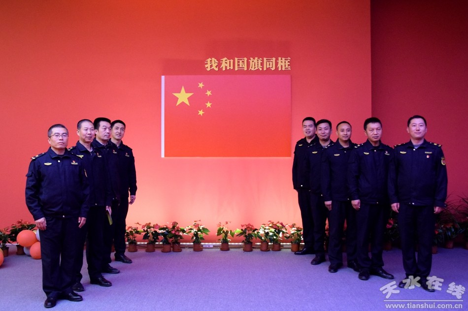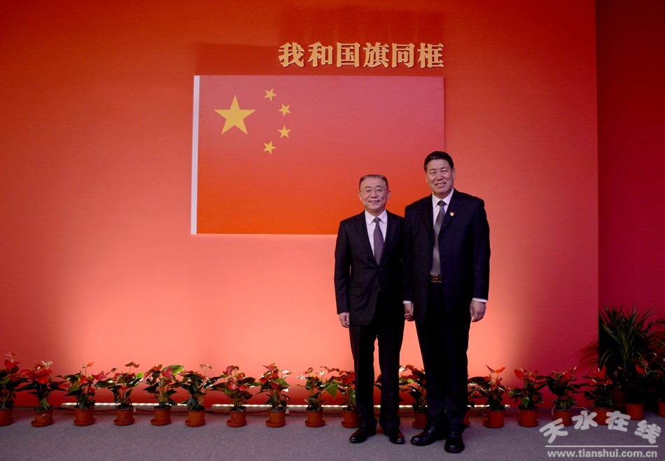 (天水市委書記王銳、市長(zhǎng)王軍和國(guó)旗同框。)