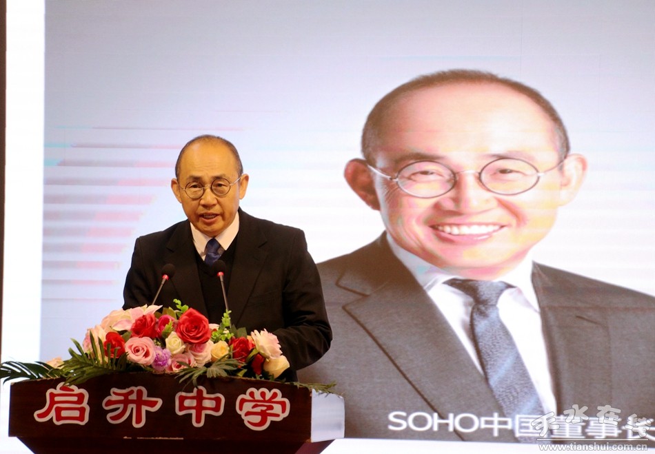 (潘石屹給啟升中學(xué)“公益攝影班”授班旗)