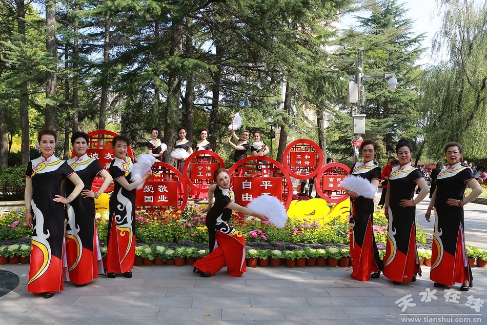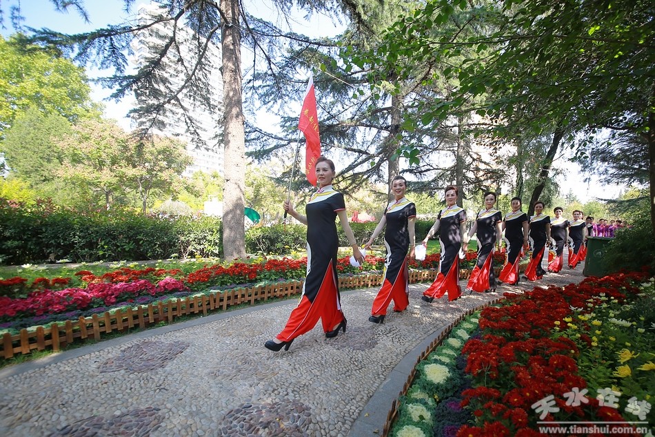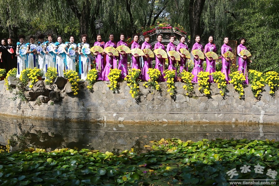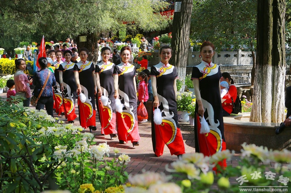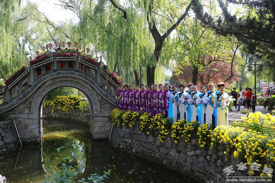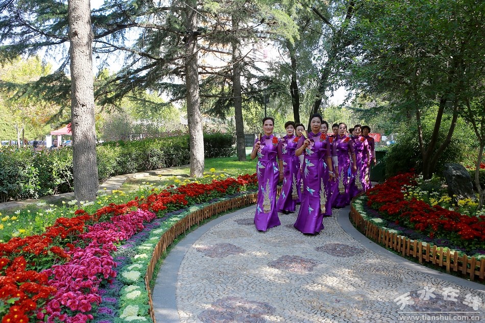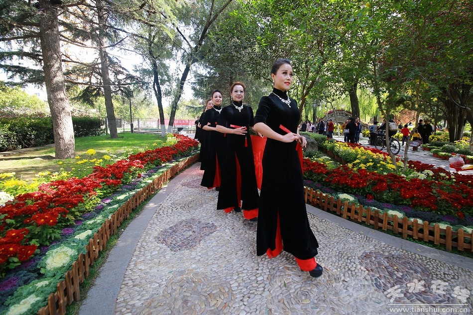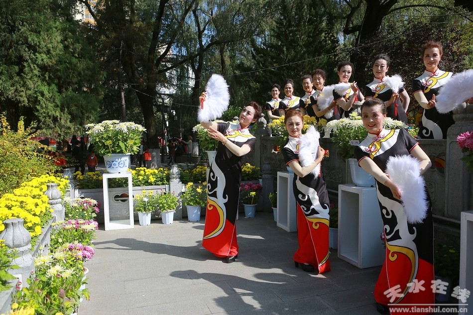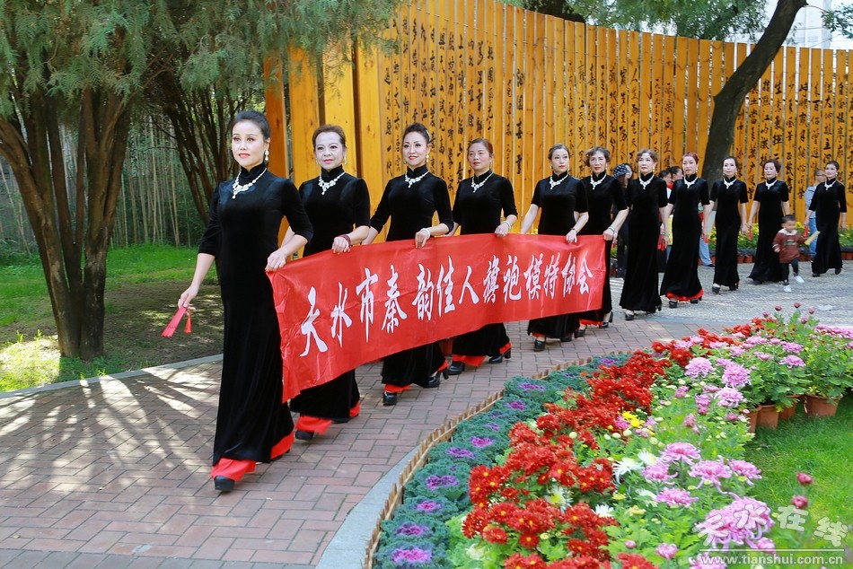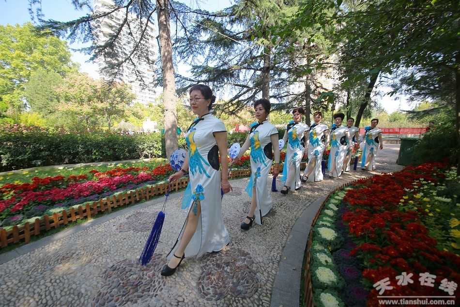 10月20日,天水市人民公園,秦州區(qū)菊展現(xiàn)場,天水市秦韻佳人旗袍模特協(xié)會的旗袍秀在這里驚艷上演,讓此時此刻的菊展現(xiàn)場更是充滿詩情畫意,美不勝收。一時間,內(nèi)斂、含蓄、溫柔,卻又高貴、華麗、飄逸的旗袍秀,吸引了眾多游客的目光,成為菊展現(xiàn)場一道亮麗的風(fēng)景。