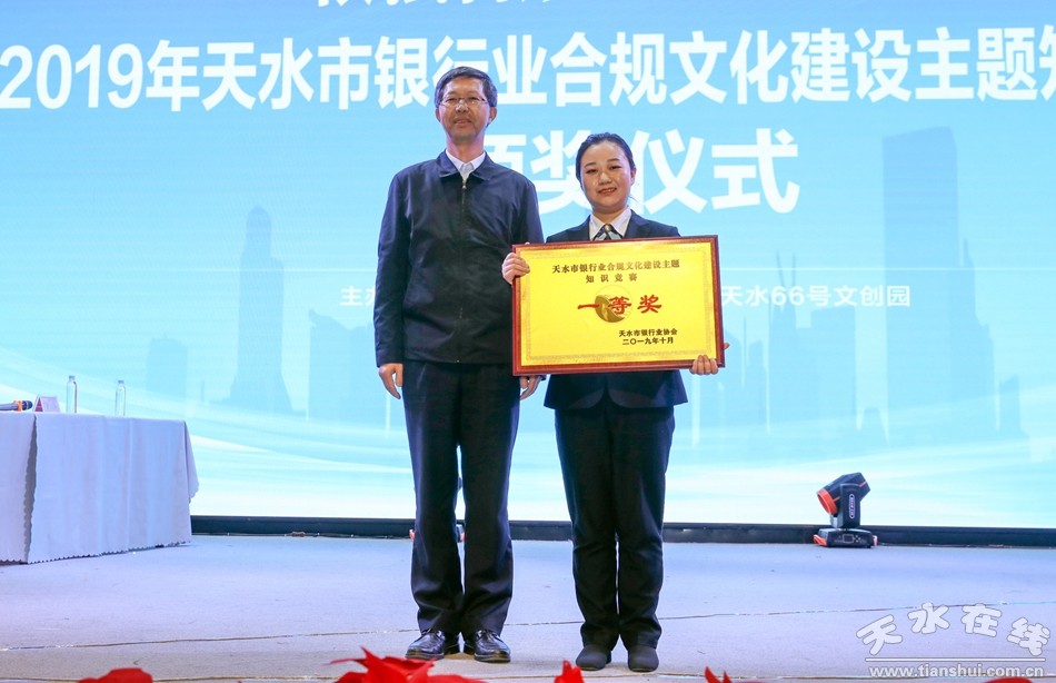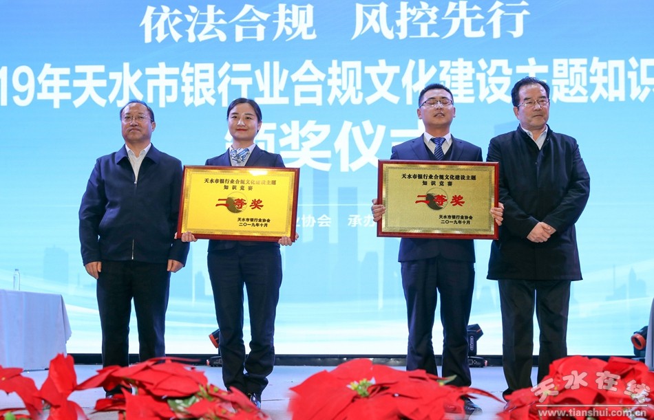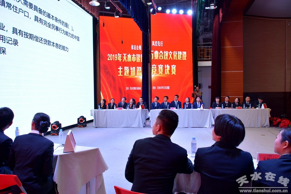 10月23日,由天水市銀行業(yè)協(xié)會主辦,天水66文創(chuàng)園承辦的2019天水市銀行業(yè)合規(guī)文化建設(shè)主題知識競賽決賽暨頒獎儀式在甘肅工業(yè)職業(yè)技術(shù)學(xué)院舉行。經(jīng)過激烈的角逐,秦州長銀村鎮(zhèn)銀行最終奪得桂冠,蘭州銀行、張川聯(lián)社獲得二等獎,農(nóng)業(yè)銀行、秦州合行、甘肅銀行獲得三等獎。