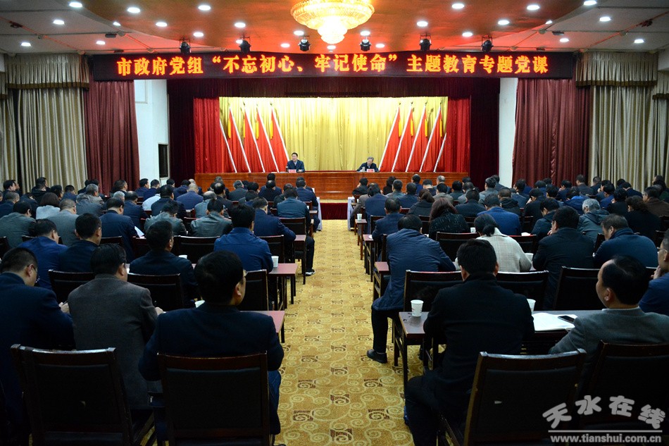 10月31日,天水市政府黨組舉行“不忘初心,牢記使命”主題教育專題黨課。市政府黨組書記、市長王軍以“認(rèn)真學(xué)習(xí)黨章,嚴(yán)格遵守黨章”為主題作專題黨課輔導(dǎo)。