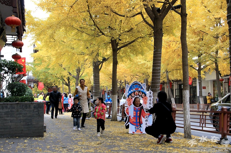 近年來,每到11月初,秦州區(qū)對青年南北路實施銀杏落葉不掃,并在晚上開啟燈光,形成樹上金光燦爛、路上黃葉起舞的“黃金大道”獨(dú)特景觀,每天吸引上萬游客來這里觀賞。