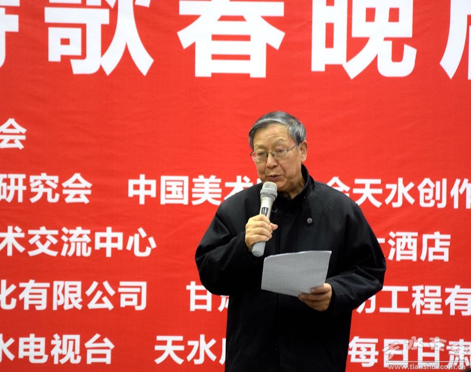 (天水杜甫研究會(huì)會(huì)長、天水詩歌春晚組委會(huì)主任聶大受致辭。)