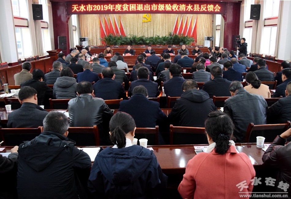 11月16日,天水市2019年度貧困退出市級(jí)驗(yàn)收清水縣反饋會(huì)召開(kāi)。市委常委、宣傳部部長(zhǎng)張建杰出席會(huì)議并講話,市人大常委會(huì)副主任、清水縣委書(shū)記劉天波作表態(tài)發(fā)言。