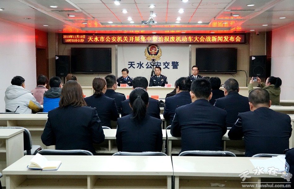 為切實(shí)做好全市道路交通安全工作,徹底解決全市報(bào)廢機(jī)動(dòng)車存量大、安全隱患突出的問(wèn)題,為全市人民群眾平安出行創(chuàng)造安全穩(wěn)定的道路交通環(huán)境,按照省公安廳統(tǒng)一部署要求,11月 19 日下午,天水市公安局召開全市公安機(jī)關(guān)集中解決報(bào)廢車輛隱患問(wèn)題新聞發(fā)布會(huì)。