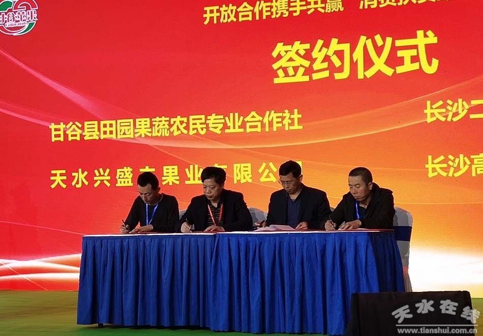 為了充分發(fā)揮好展會(huì)宣傳推介效果,甘谷縣在展會(huì)顯著位置搭建特裝展位。22日開幕后,全國(guó)政協(xié)副主席齊續(xù)春參觀了我市甘谷縣特裝展位。開幕式當(dāng)天下午1點(diǎn)半,舉行了花牛蘋果甘谷果品專場(chǎng)宣傳推介會(huì),推介會(huì)邀請(qǐng)了中國(guó)果品流通協(xié)會(huì)、長(zhǎng)沙紅星國(guó)際農(nóng)副產(chǎn)品大市場(chǎng)、長(zhǎng)沙市果品協(xié)會(huì)、長(zhǎng)沙巨興果食品貿(mào)易有限公司等單位負(fù)責(zé)人參加。推介會(huì)上,市農(nóng)業(yè)農(nóng)村局調(diào)研員李文俊介紹了天水市果品產(chǎn)業(yè)總體發(fā)展情況,甘谷縣縣長(zhǎng)吳健推介了甘谷花牛蘋果,中國(guó)果品流通協(xié)會(huì)副會(huì)長(zhǎng)張慶豐到會(huì)祝賀并講話;甘谷縣田園果蔬農(nóng)業(yè)農(nóng)民專業(yè)合作社、天水興盛豐果業(yè)有限公司、長(zhǎng)沙二哥果業(yè)公司、長(zhǎng)沙高輝果業(yè)公司等8家企業(yè)相互簽訂了果品購銷協(xié)議;甘谷縣副縣長(zhǎng)杜興給長(zhǎng)沙巨興果食品貿(mào)易有限公司頒發(fā)了甘谷蘋果長(zhǎng)沙特約經(jīng)銷商牌匾。